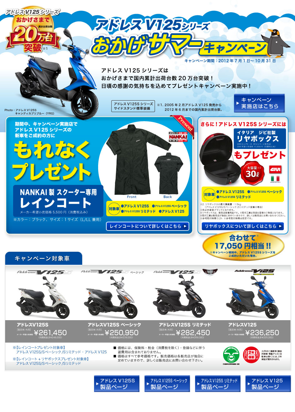 10月31日までに、「アドレスV125」シリーズを